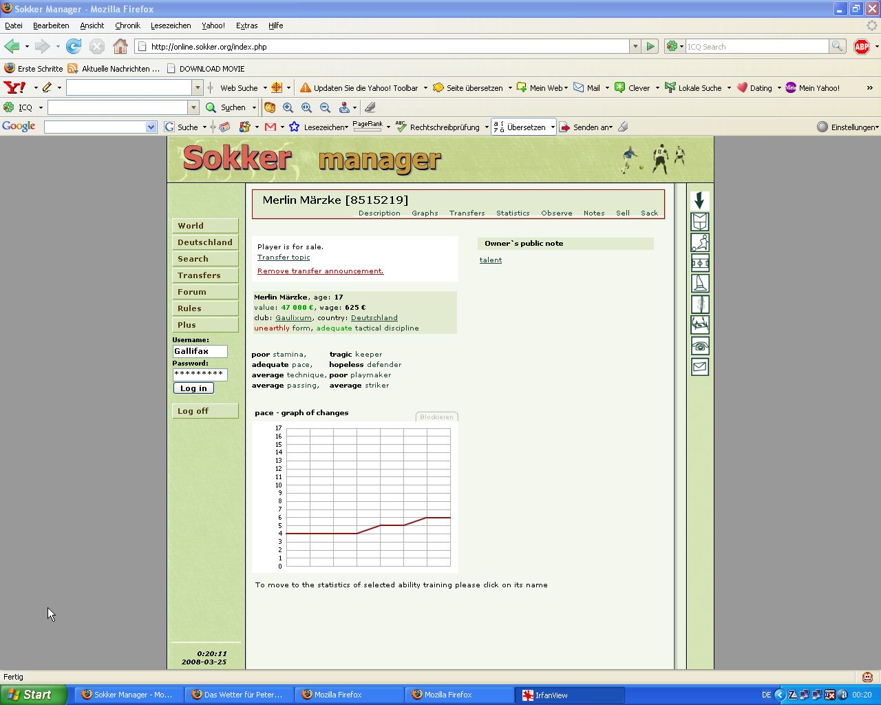 ich weiß nicht, wie es für euch ist, aber für mich wird es wesentlich einfacher zu überblicken, wenn man einfach den Spieler vorher und nachher mit seinem jeweiligen Alter und seinen jeweiligen Skills postet.