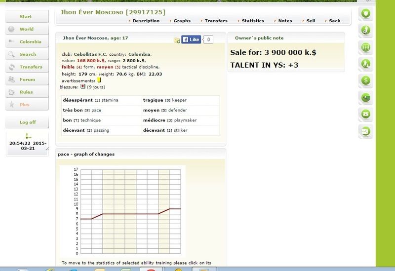 Este juvenil Colombiano talentoso y que promete lo quiero vender, ya no puedo entrenarlo mas :(